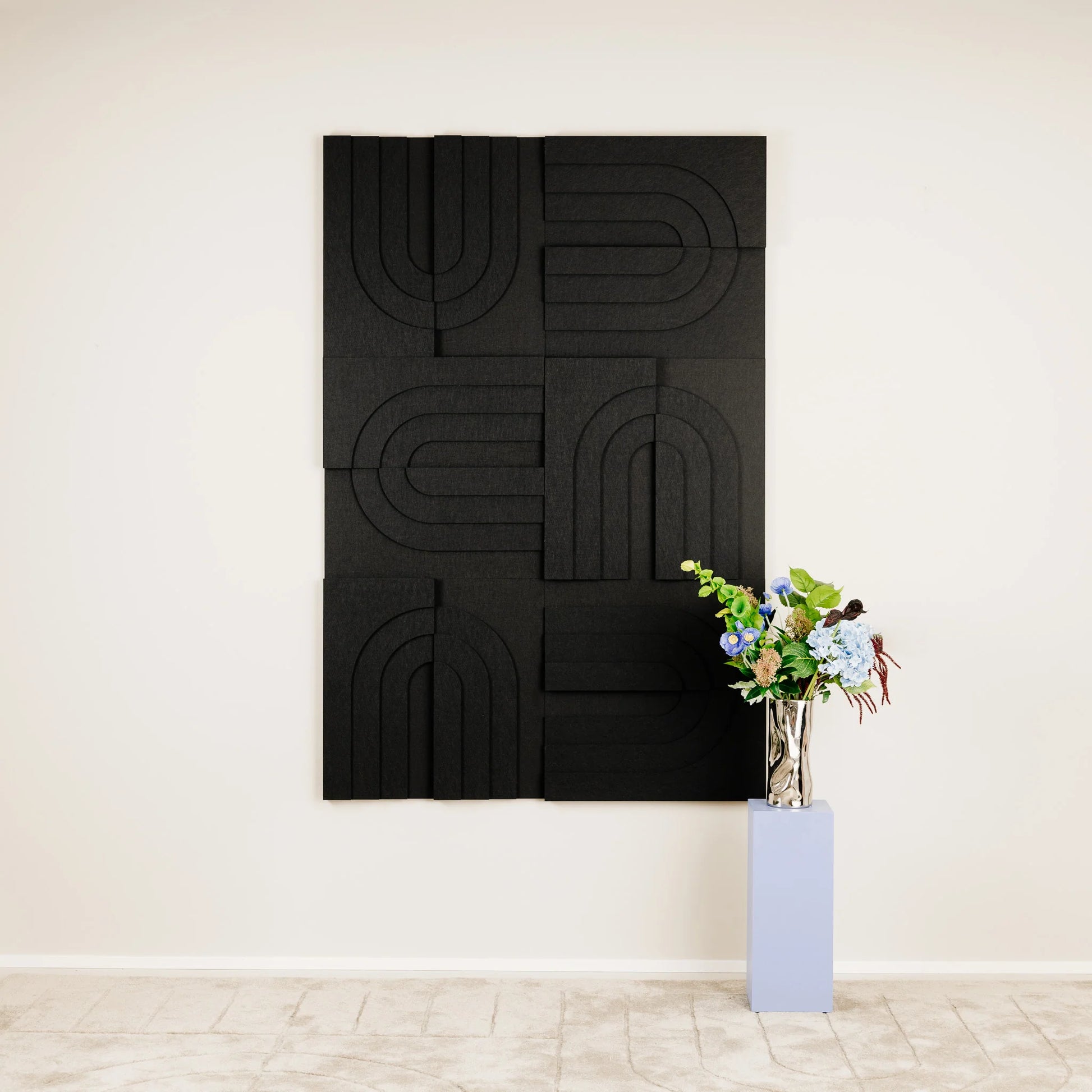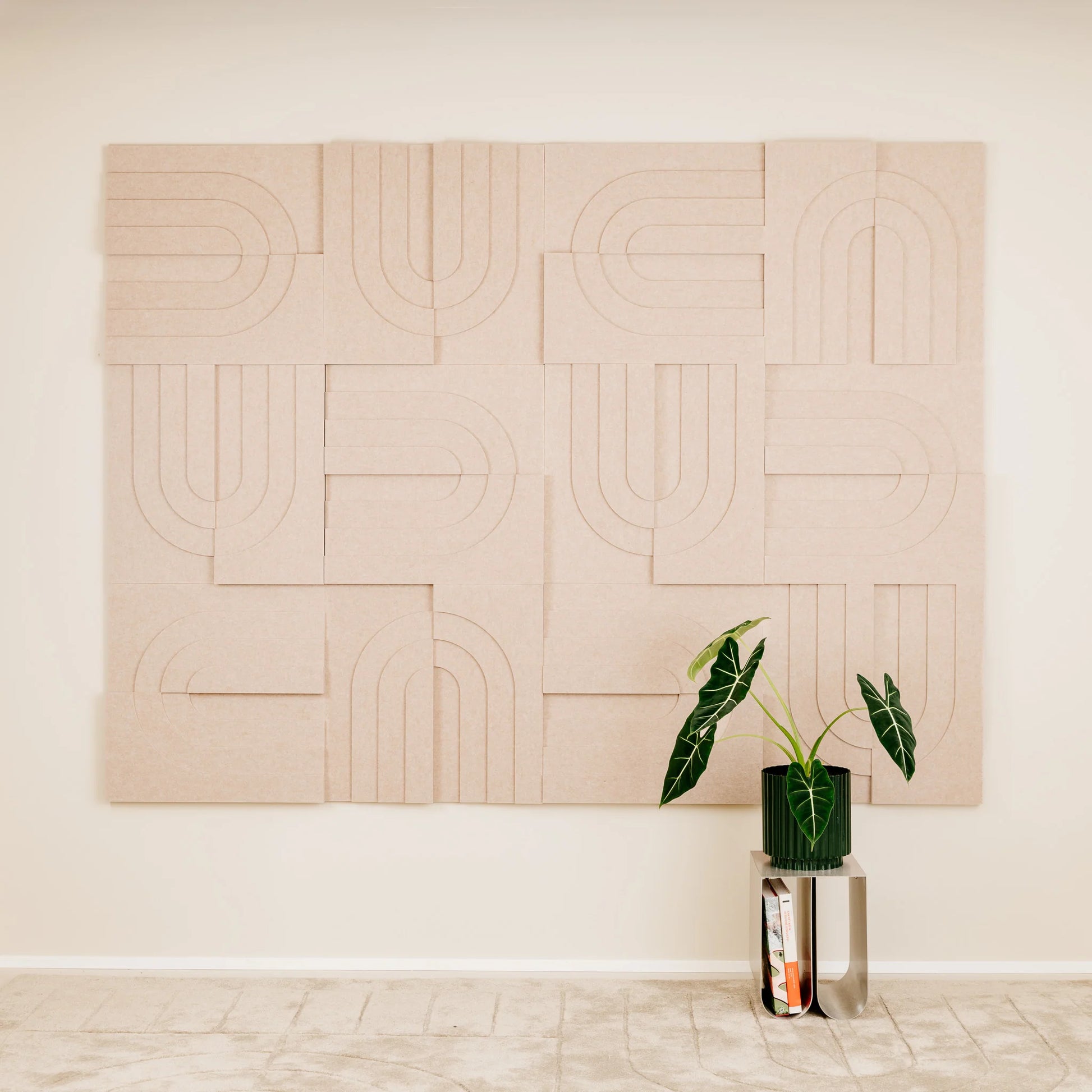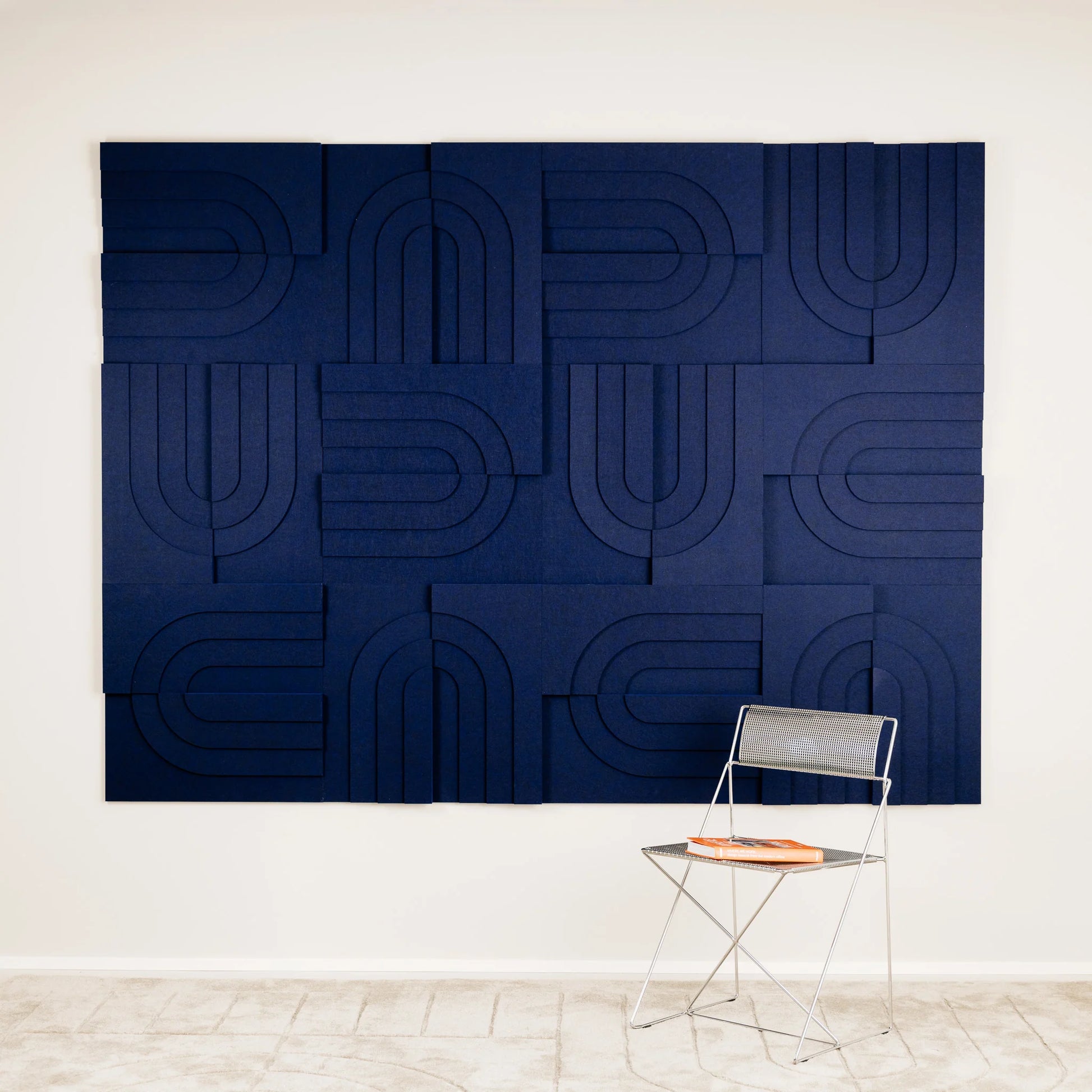 The Arch Tile Set by Arturel blends acoustic function with sculptural form. Layered arcs and clean lines create a bold, three-dimensional look, bringing depth and calm to any space. Available in multiple set sizes, the tiles can be rotated and arranged freely for a custom visual impact.