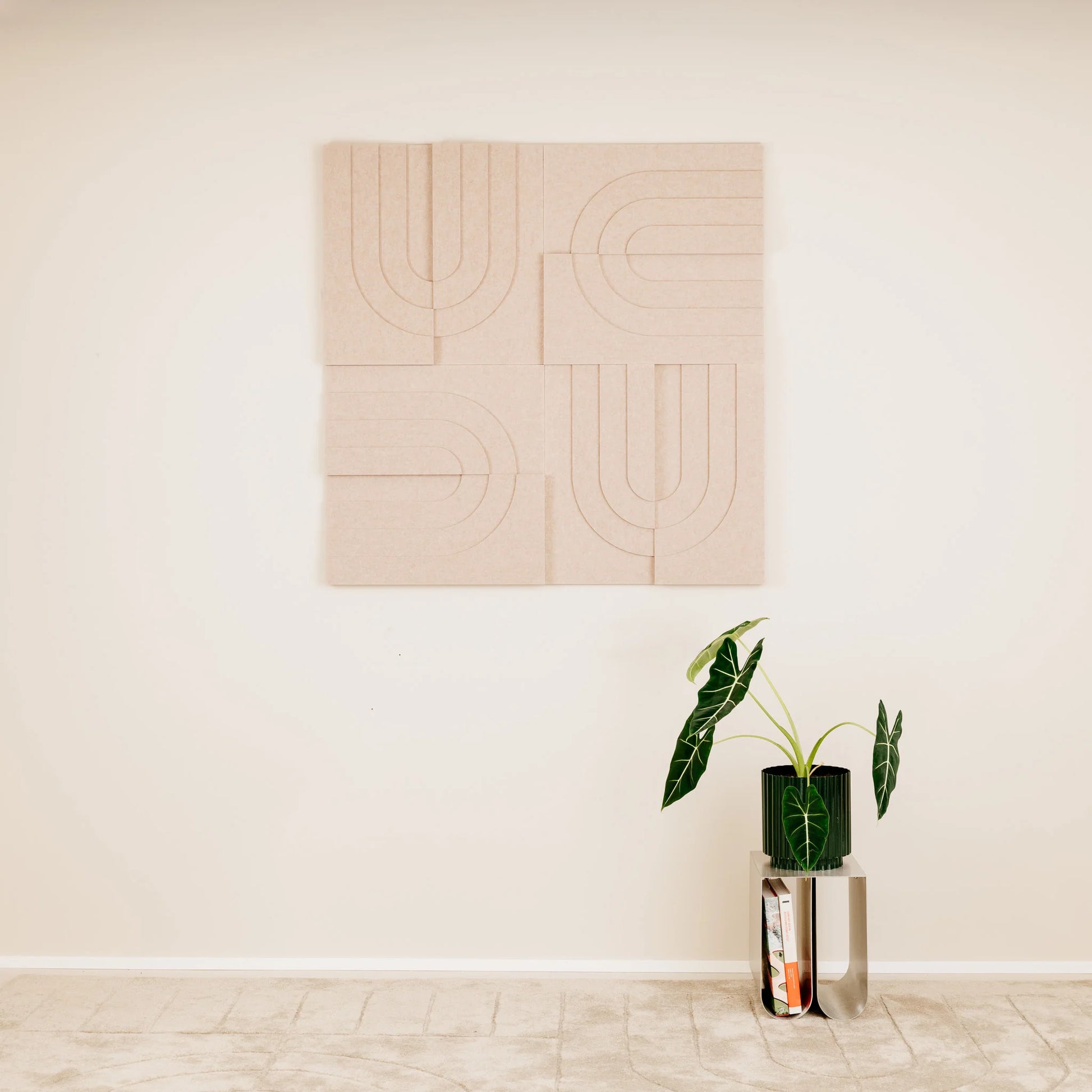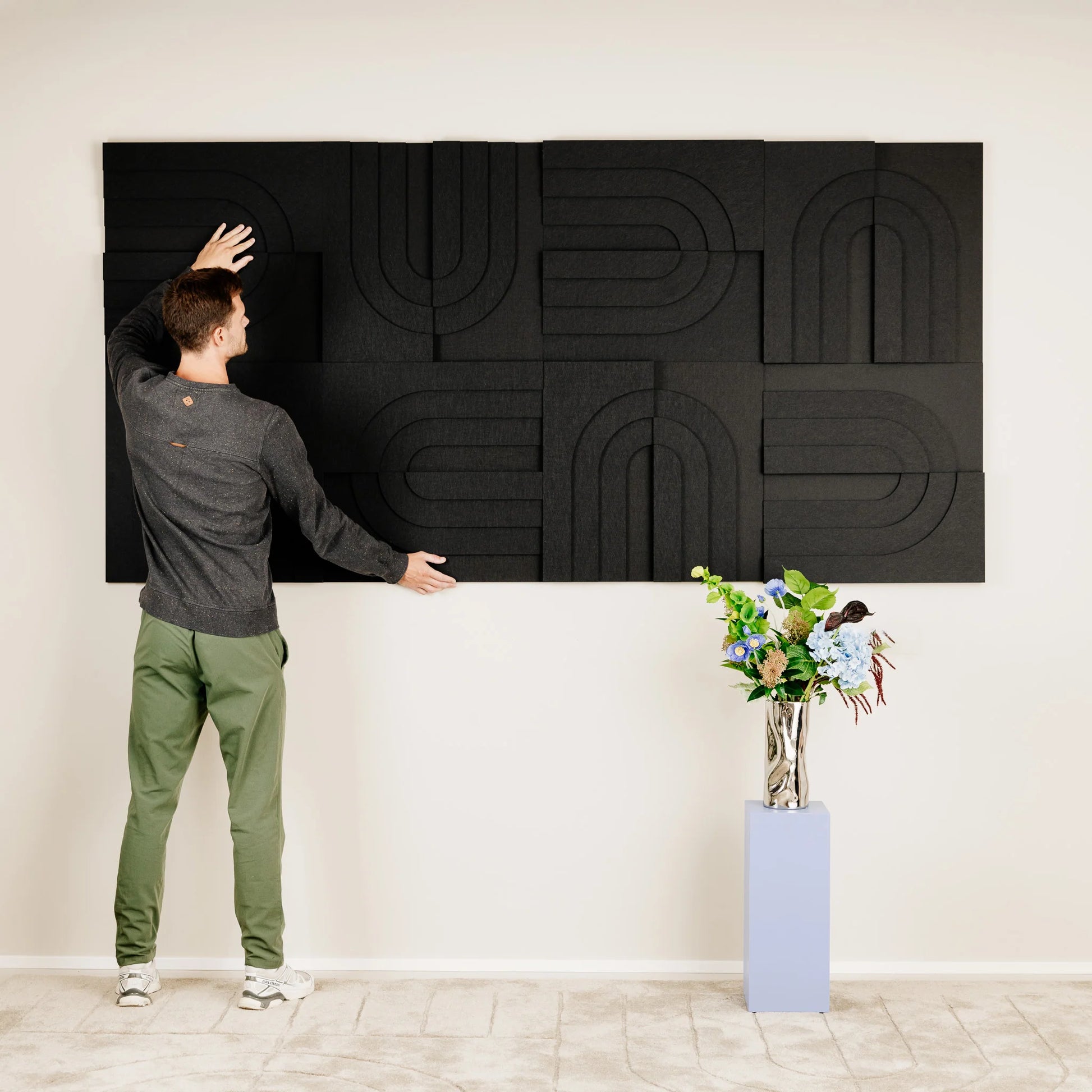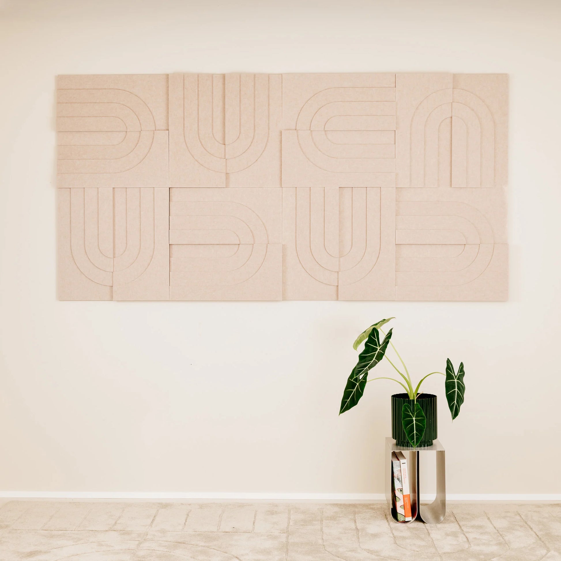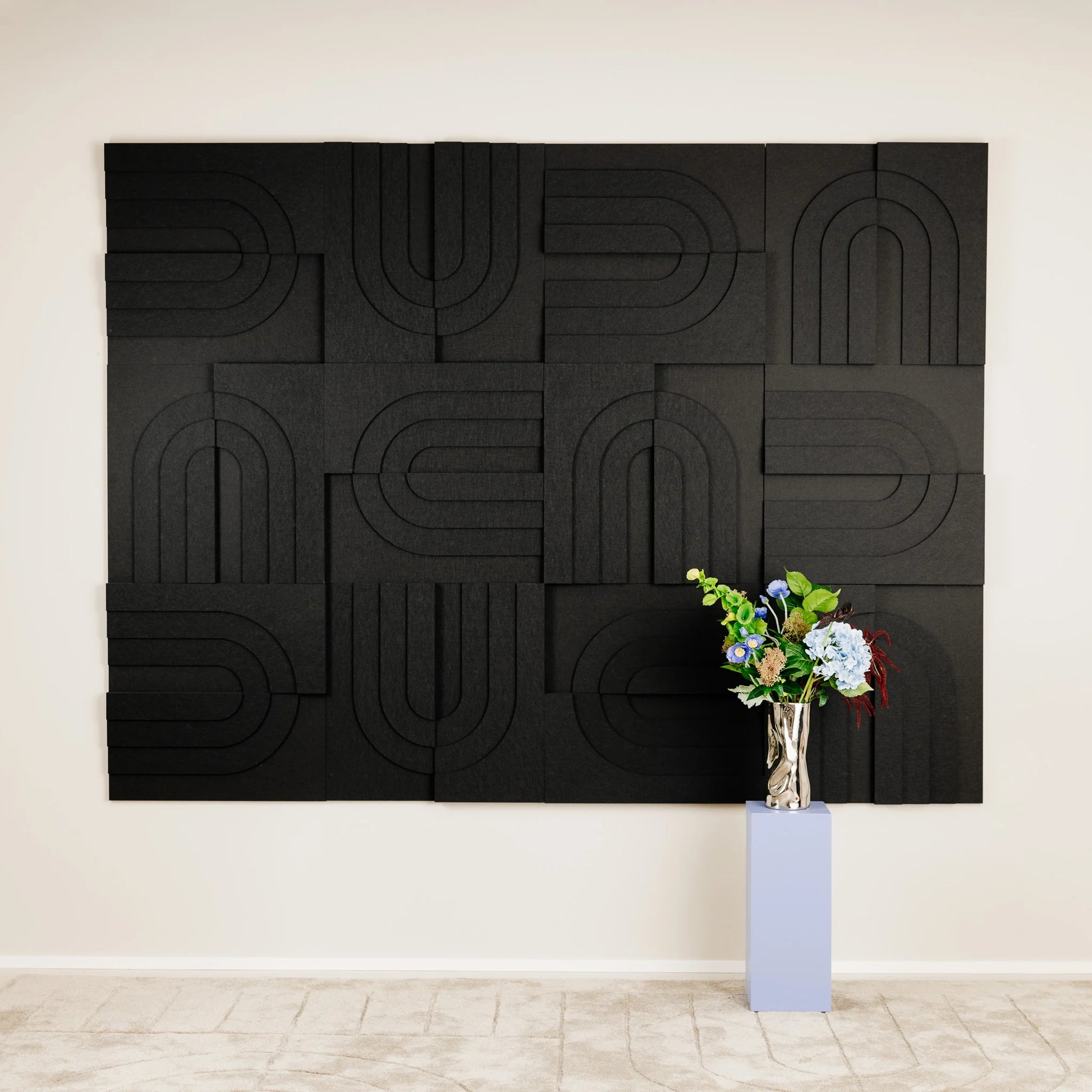 The Arch Tile Set by Arturel blends acoustic function with sculptural form. Layered arcs and clean lines create a bold, three-dimensional look, bringing depth and calm to any space. Available in multiple set sizes, the tiles can be rotated and arranged freely for a custom visual impact.